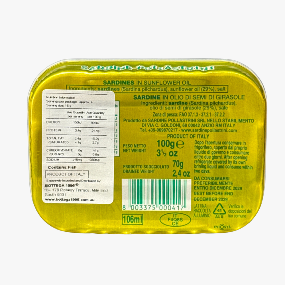 Sardines In Sunflower Oil 100G - Pollastrini Di Anzio