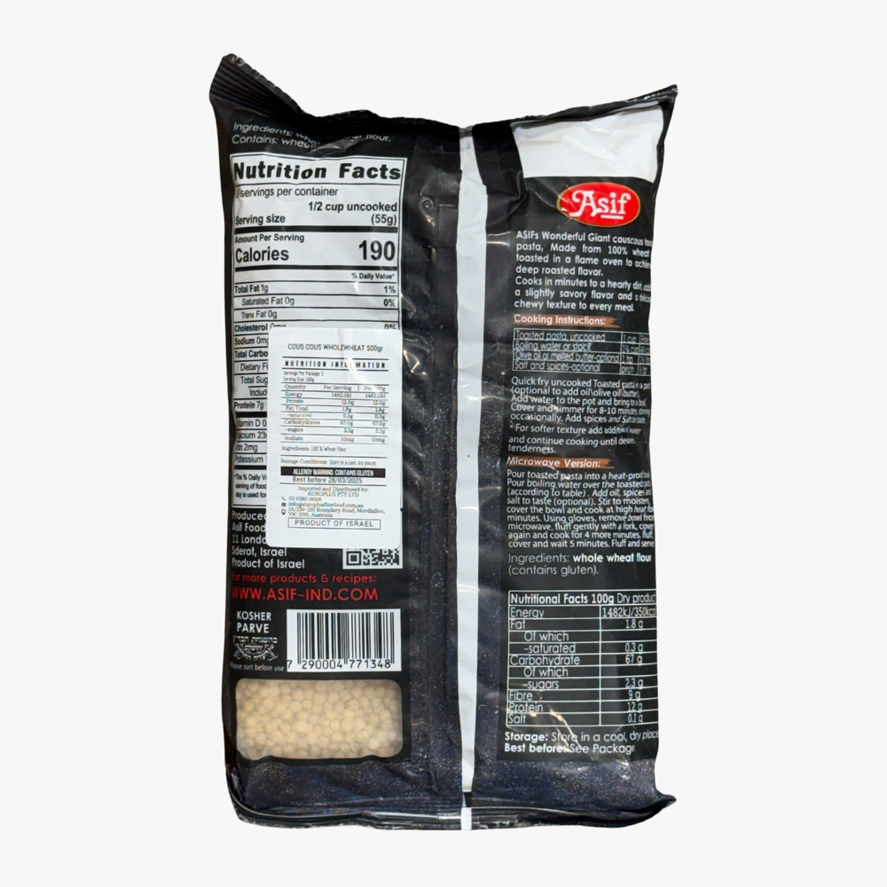 Whole Wheat Pearl Couscous 500G - Asif - Nature At Home